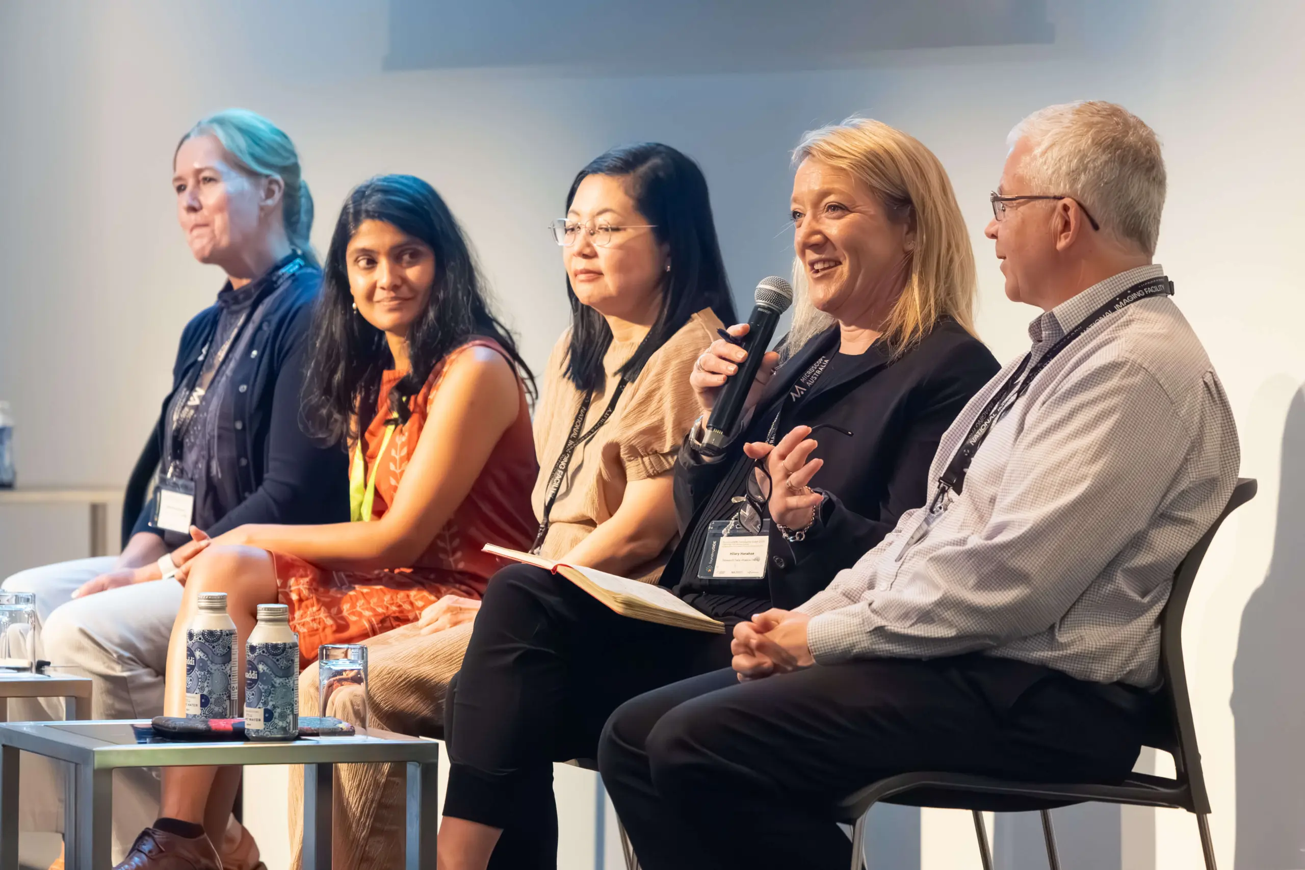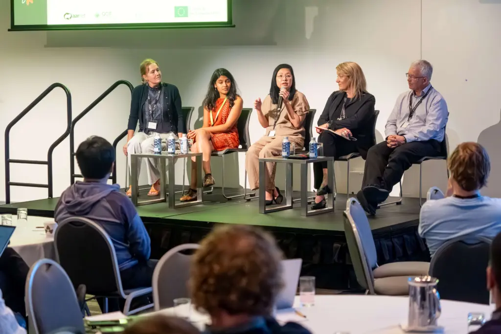 The panel What Drives Success in Community-Led Solutions?, chaired by Lisa Yen and Wojtek Goscinski, explored what truly sustains and connects global, community-driven initiatives in imaging science. The discussion brought together a diverse group of panelists, Nathalie Gaudreault (Allen Institute for Cell Science, USA), Aastha Mathur (Euro-BioImaging ERIC), Tomomi Shimogori (RIKEN Center for Brain Science, Japan), Hilary Hanahoe (Research Data Alliance), and Joe Shapter (The University of Queensland, Australia), who shared perspectives from research infrastructures, institutes, and policy networks.